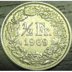 1/2 franc Switzerland 1969 B (Bern mint) / 1/2 франка 1969 B Швейцарія (монетний двір Берн)