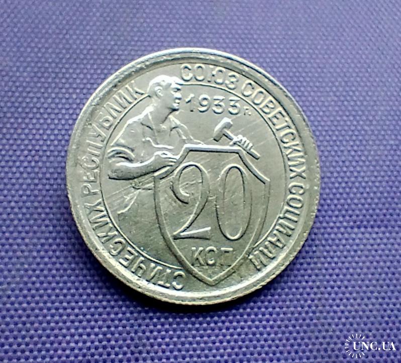 Оригинал20 копійок 1933 року, стан монети по світлинах.