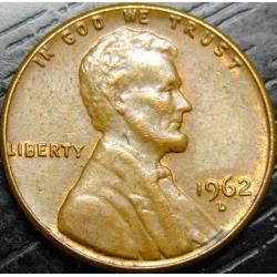 One cent USA 1962 D (Denver mint) / 1 цент США 1962 D (монетний двір Денвер)