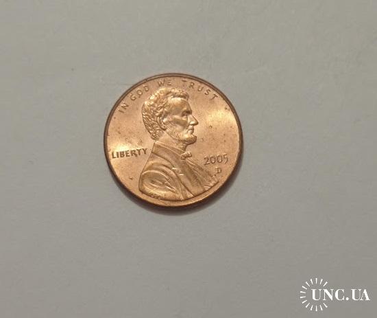 ОБігова монета із цинку з мідним покриттям 1 цент 2005 року. Стан по фото