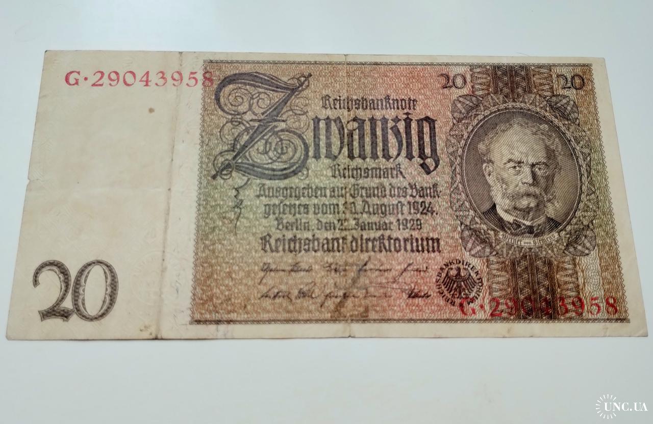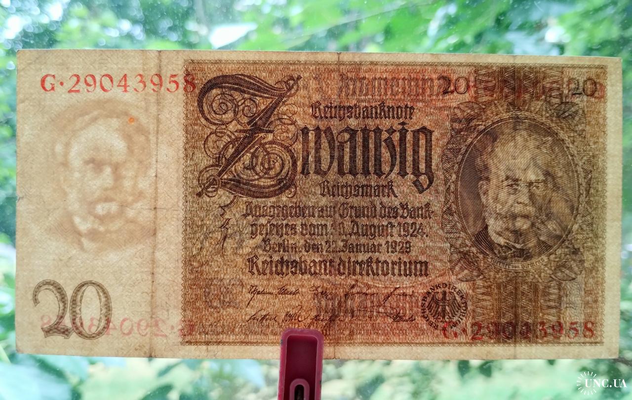 есть20 марок 1929 року, стан банкноти по світлинах.