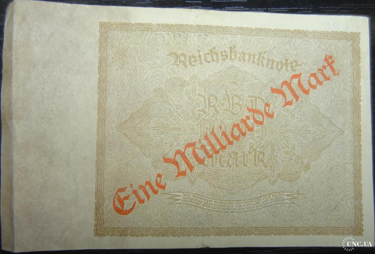 1 milliarde mark on 1000 mark Germany 1923 (overprint on 1000 Mark 1922) / 1 мільярд марок Німеччина 1923 (наддрук на 1000 марок 1922)