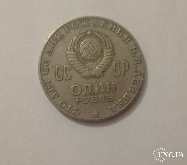 ОригиналПамятна мідно-нікелева монета 1 рубль 1970 року: "Сто лет со дня рождения В.И.Ленина". Стан по фото.