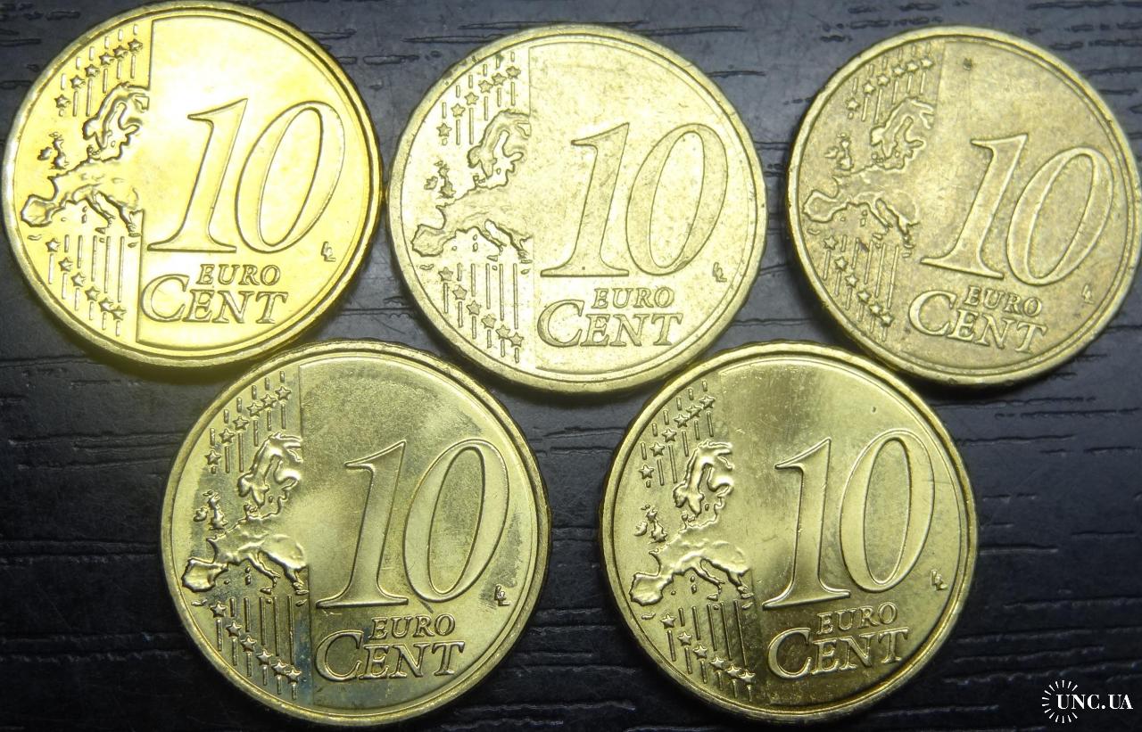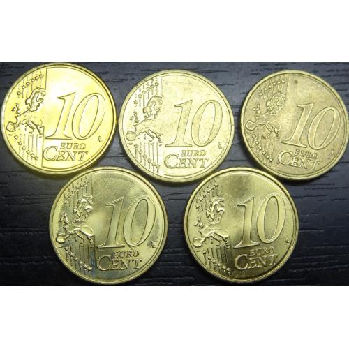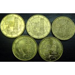 set of 10 eurocent Austria (all different by date) 5 pieces / порічниця 10 євроцентів Австрія, 5шт, всі різні