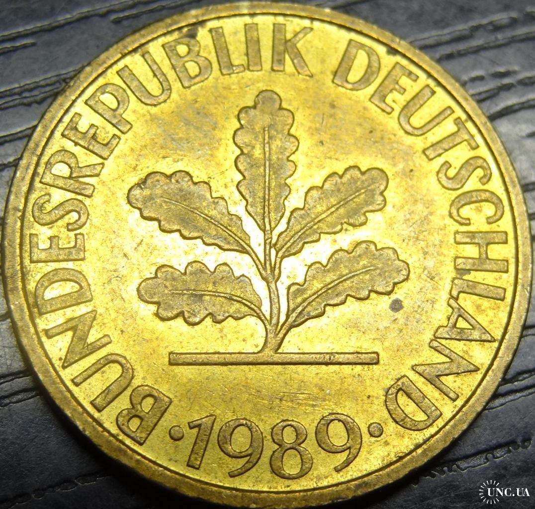 10 pfennig Federal Republic of Germany 1989 F (Stuttgart mint) / 10 пфенігів Федеративна Республіка Німеччина 1989 F (монетний двір Штутгарт)