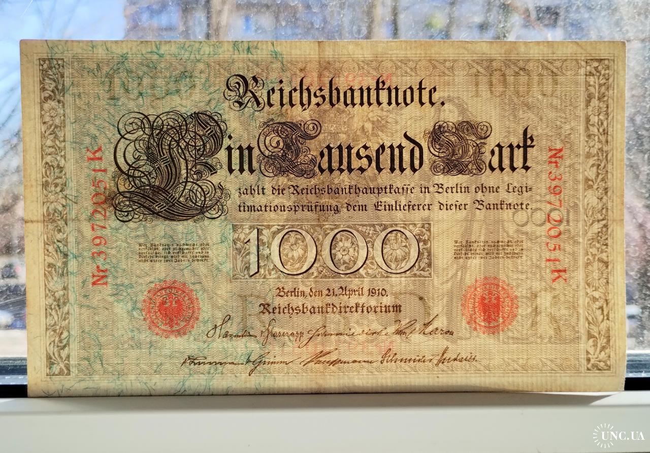 есть1000 марок 1910 року, Німеччина, стан банкноти по світлинах.