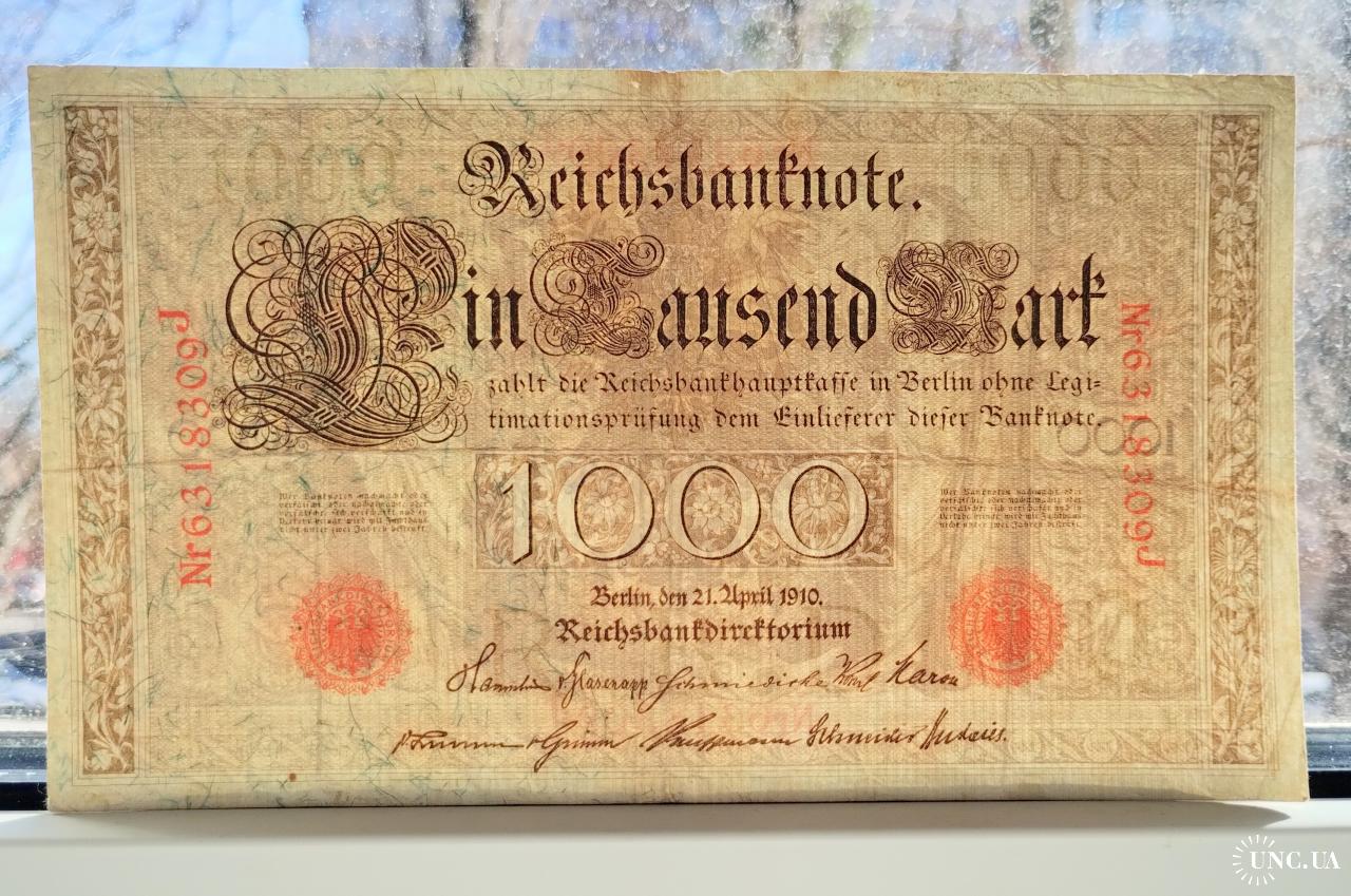 есть1000 марок 1910 року, Німеччина, стан банкноти по світлинах.