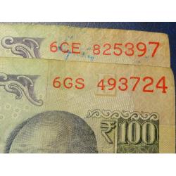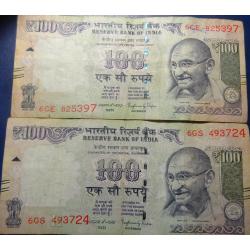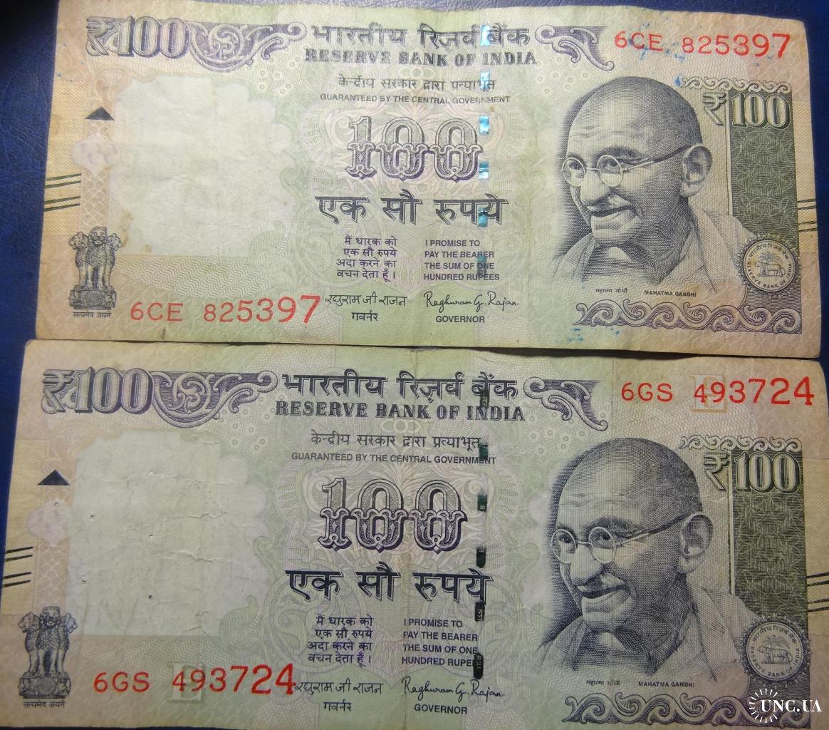 100 rupees 2016 India (different letters) / 100 рупій 2016 Індія (два різновиди)