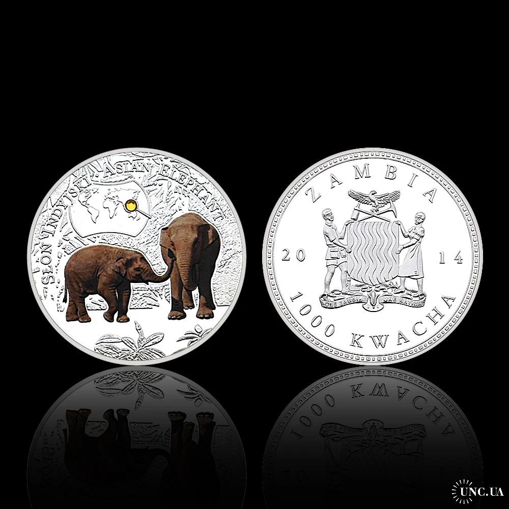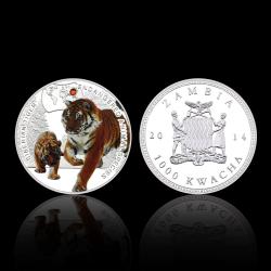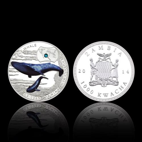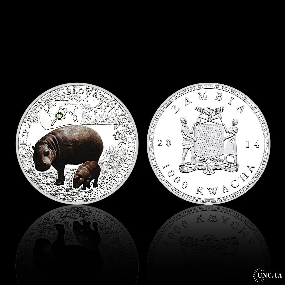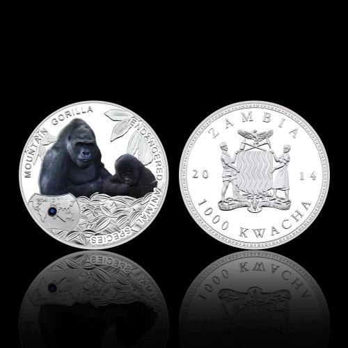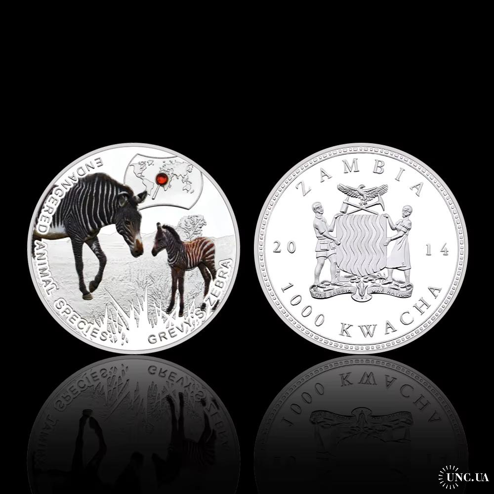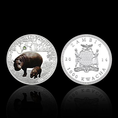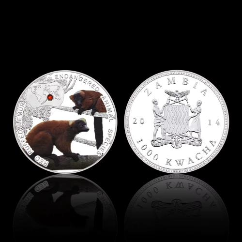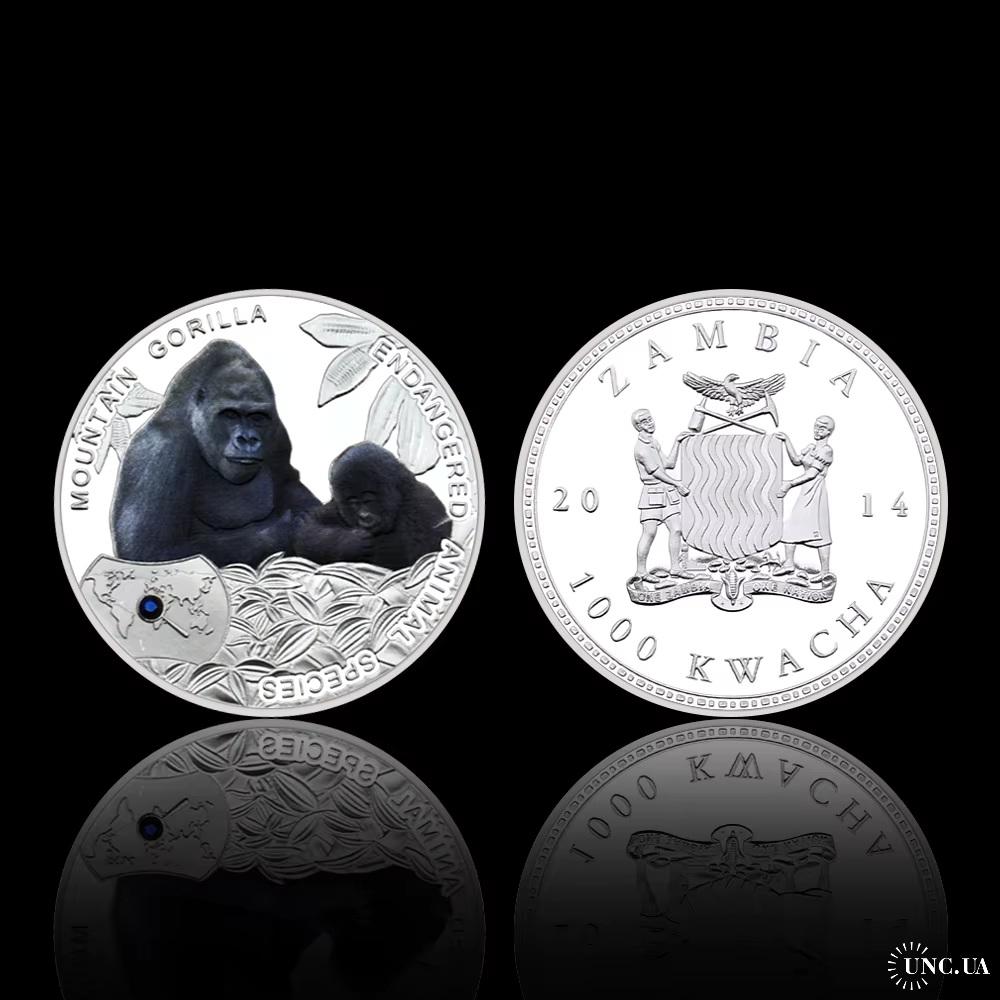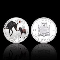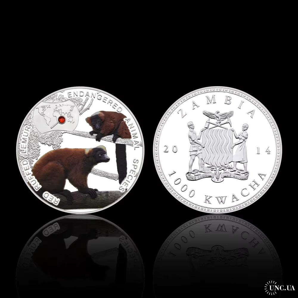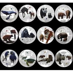 12-ть монет з срібним покриттям "Зникаючі тварини світу" ZAMBIA, 1000 KWACHA, 2014 р.