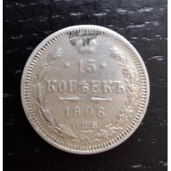 Оригинал15 копеек 1908г. Николай ІІ. Серебро 500 пробы.