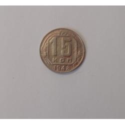 ОригиналОБігова мідно-нікелева монета 15 копійок 1948 року. Стан по фото.