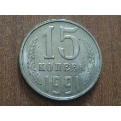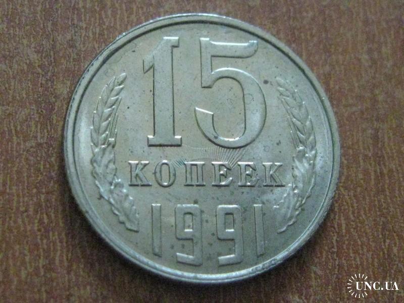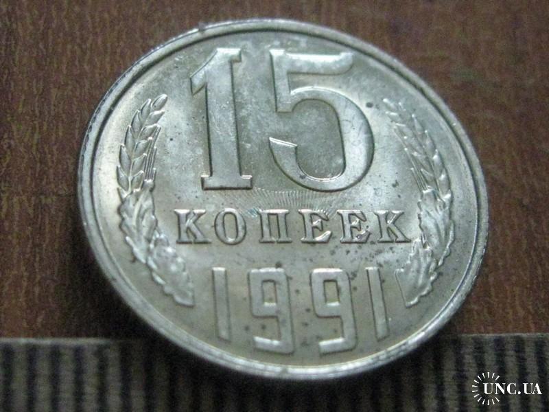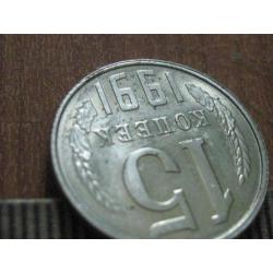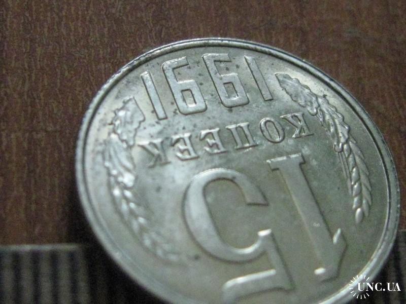 Оригинал15 копійок 1991 Л . Брак:промені сонця на реверсі.