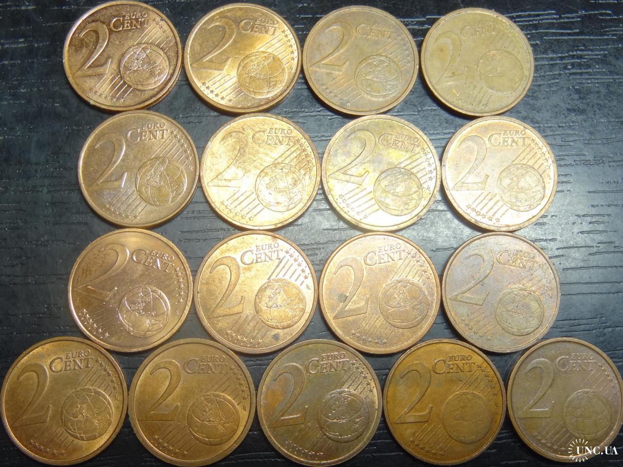 Set of 2 eurocent (different countries), 17 pieces / Комплект 2 євроцента різних країн Євросоюзу, 17шт, всі різні