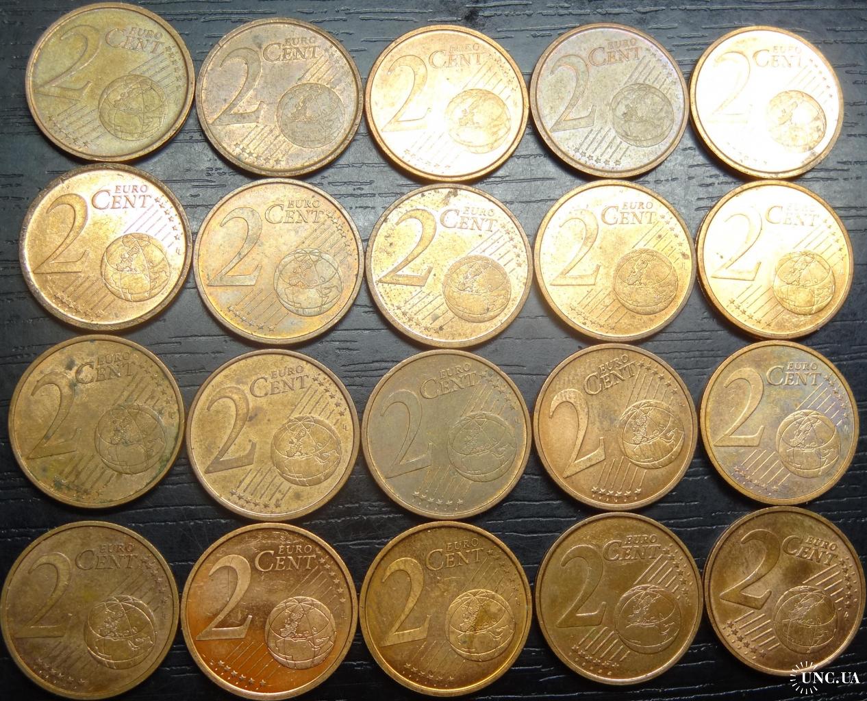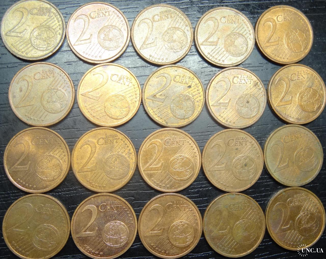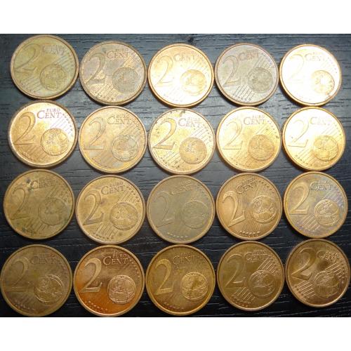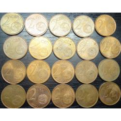 set of 2 eurocent Spain (all different by date) 20 pieces / порічниця 2 євроцента Іспанія, 20шт, всі різні
