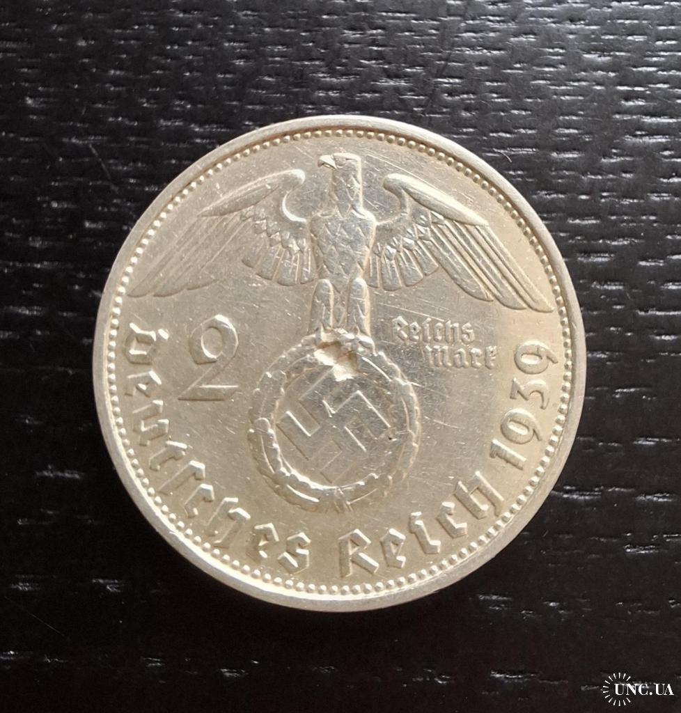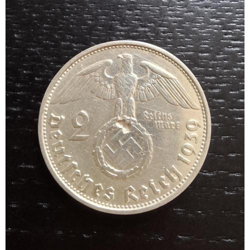 Оригинал2 марки 1939г (В) Германия, Третий рейх, Гинденбург. Серебро 625 пробы. Вес 8гр.