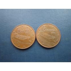 2 монети 2 євроценти Греція 2002 з літерою F та без букв одним лотом