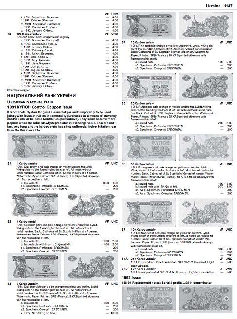 Информация удобно упорядочена по странам и выпускам банкнот, что обеспечивает быстрый поиск.