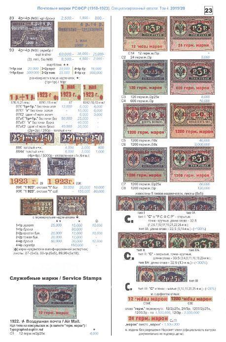 В четвертом томе специализированного каталога содержится информация о выпусках почтовых марок РСФСР (1918-1923 гг.) и СССР (1923-1960 гг.), а также почтовых блоков и конвертов СССР с оригинальными марками указанного периода.