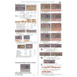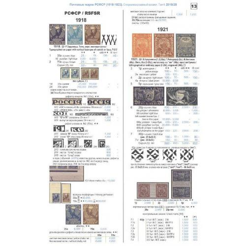 Почтовые марки РСФСР и СССР даются с разновидностями по водяным знакам, зубцовке, включая пропуски перфорации, бумаге, растрам, деталям рисунка и надпечаток. Подробно классифицированы повторные выпуски почтовых марок СССР 1946-1954 гг. по растрам, бумаге и отличиям в деталях рисунка. Приведены сведения о тиражах и расположении марок в листах.