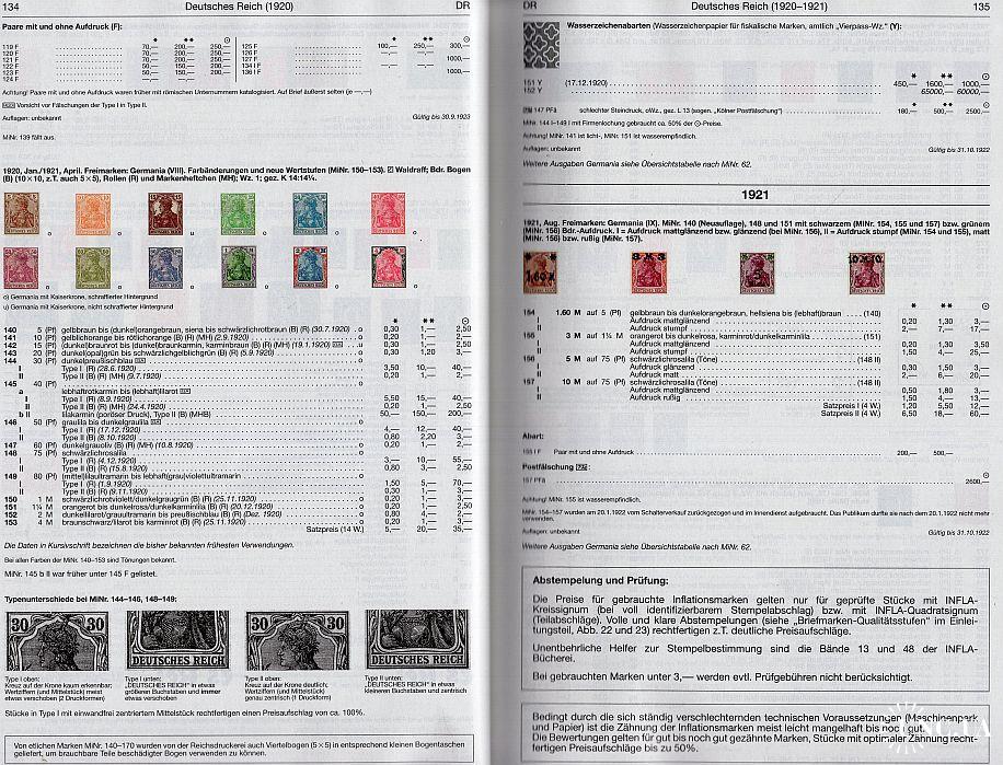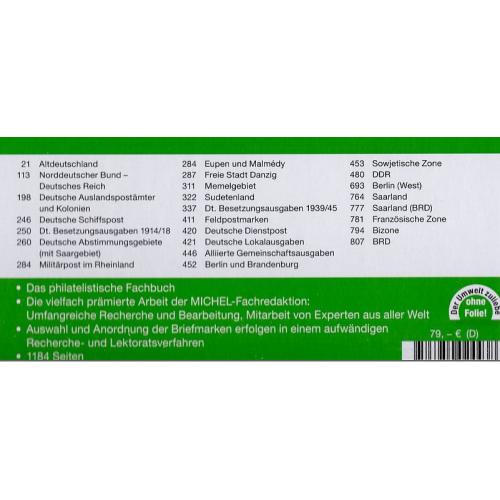 Содержание: Старая Германия, Северо-Германская Конфедерация и Германская Империя, иностранные почтовые отделения, колонии, доставка почты за границу, вопросы оккупации, избирательные участки, бельгийский военный пост в Рейнской области, Эйпен, Мальмеди, Данциг, Мемель, Судетская область, полевые почтовые марки, местные проблемы, Союзная оккупация, ГДР, Берлин (Запад), Саар с расходами OPD, Федеративная Республика Германия.