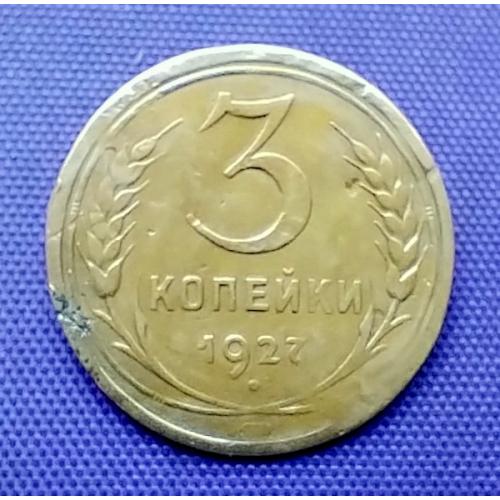 Оригинал3 копійки 1927 року, стан монети по світлинах.