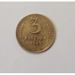 ОригиналОбігова монета із алюмінієвої бронзи 3 копійки 1949 року. Стан по фото