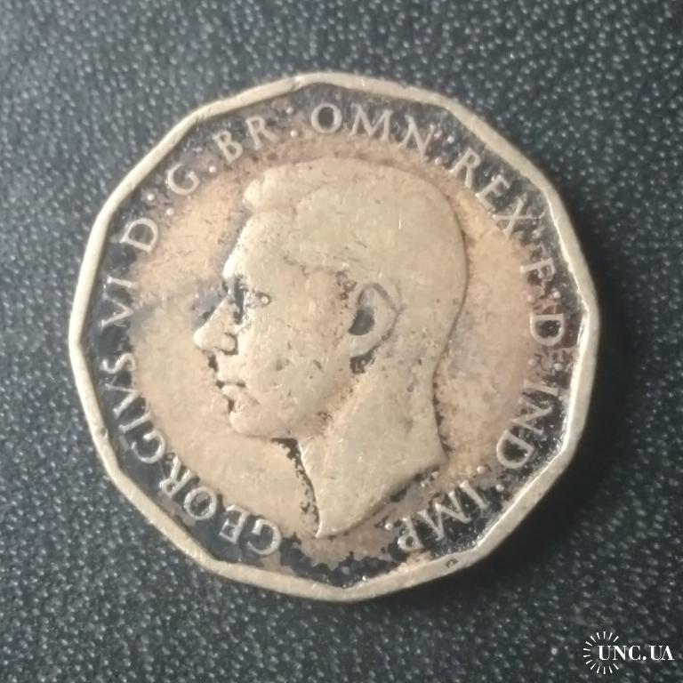Оригинал3 пенса 1942 Великобритания