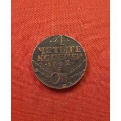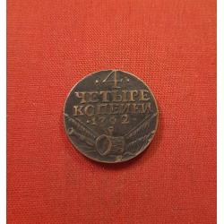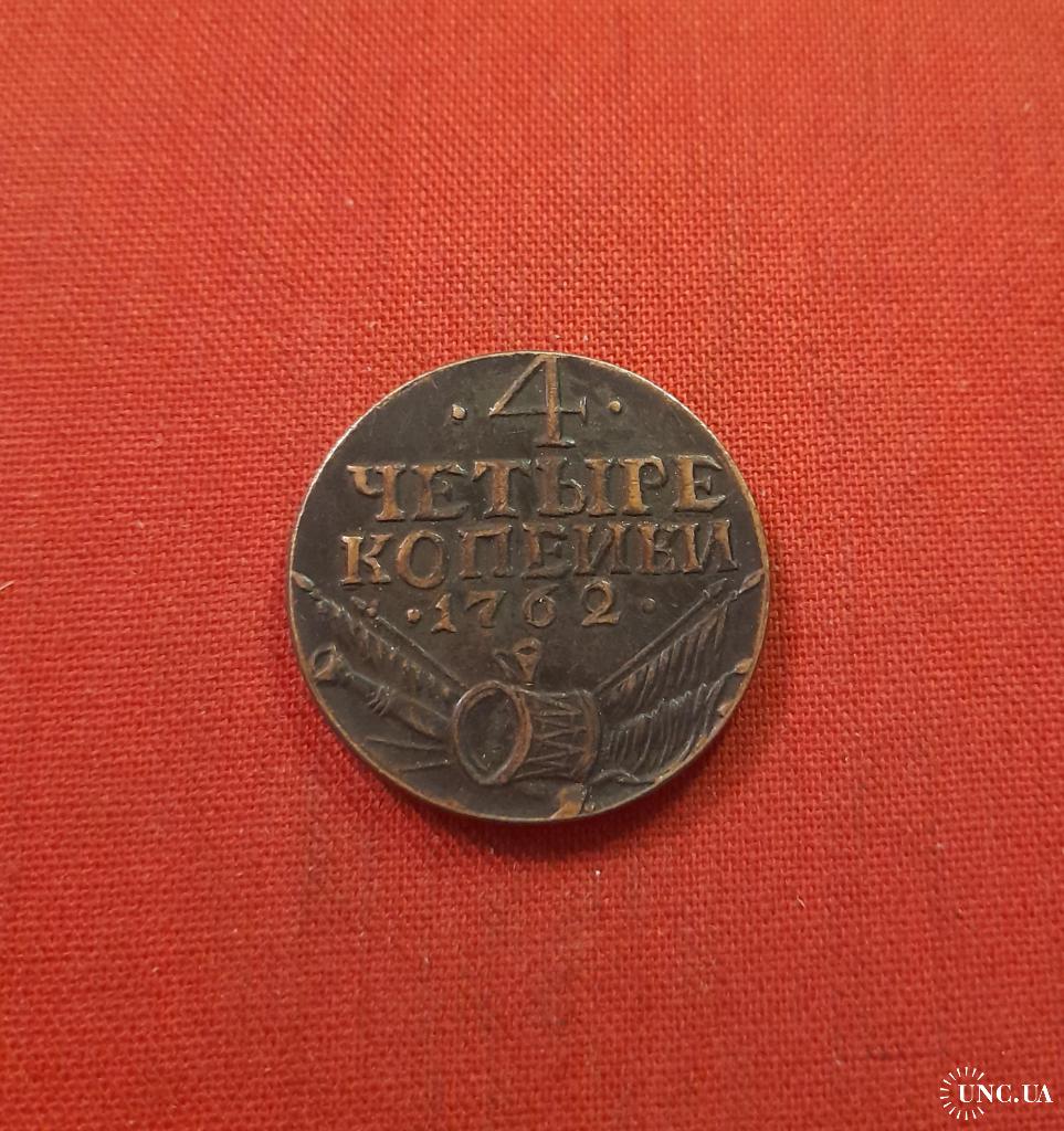 Оригинал4 копейки 1762г.Петр III, Барабаны, КОПИЯ, редкие