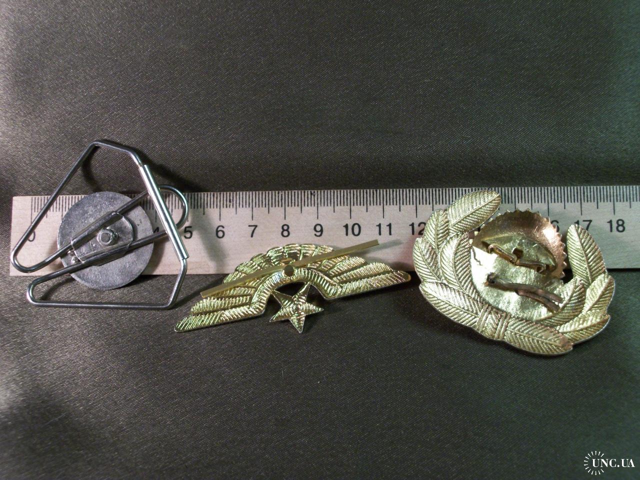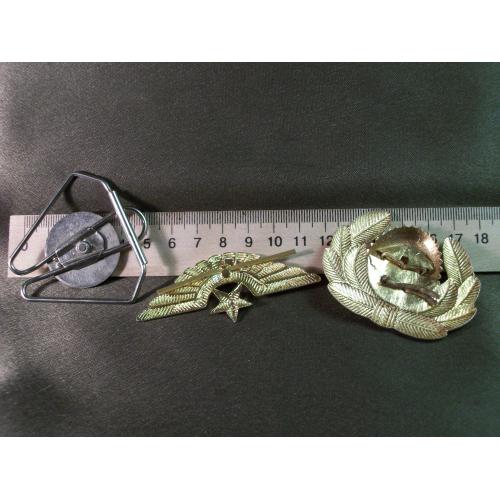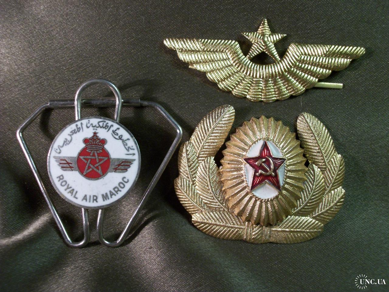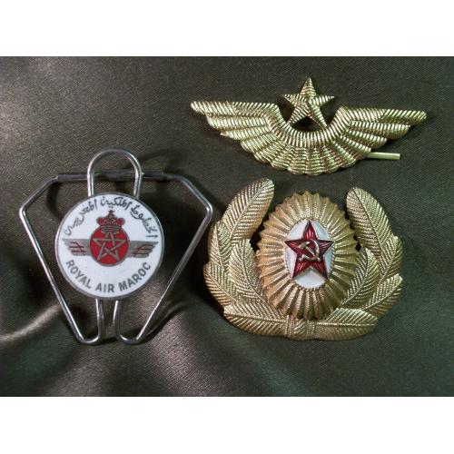 1946-19905.218 Кокарда и знак на тулью, летчик ВВС СССР и знак летчика Королевских авиалиний Марокко. Легкий и тяжелый металл