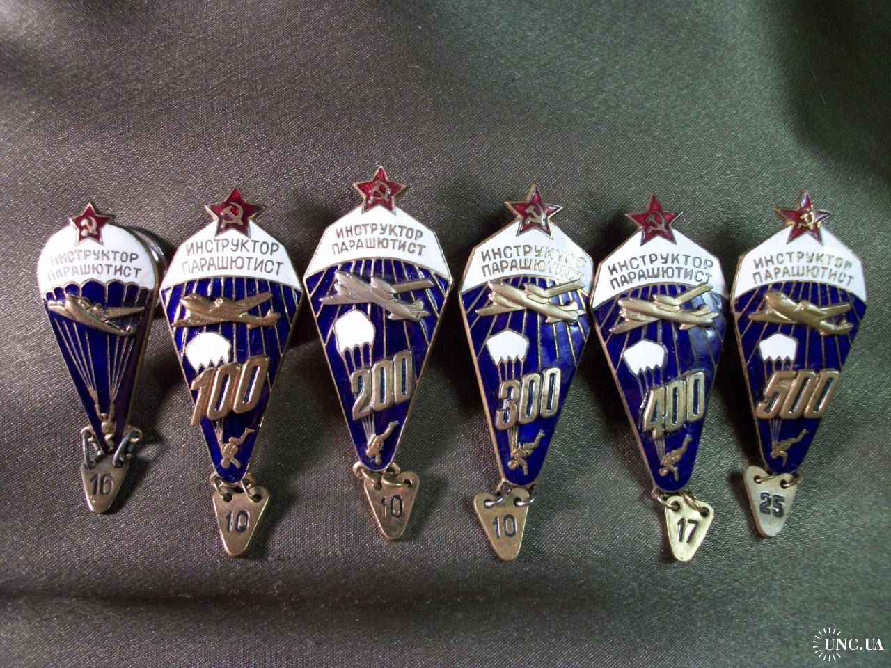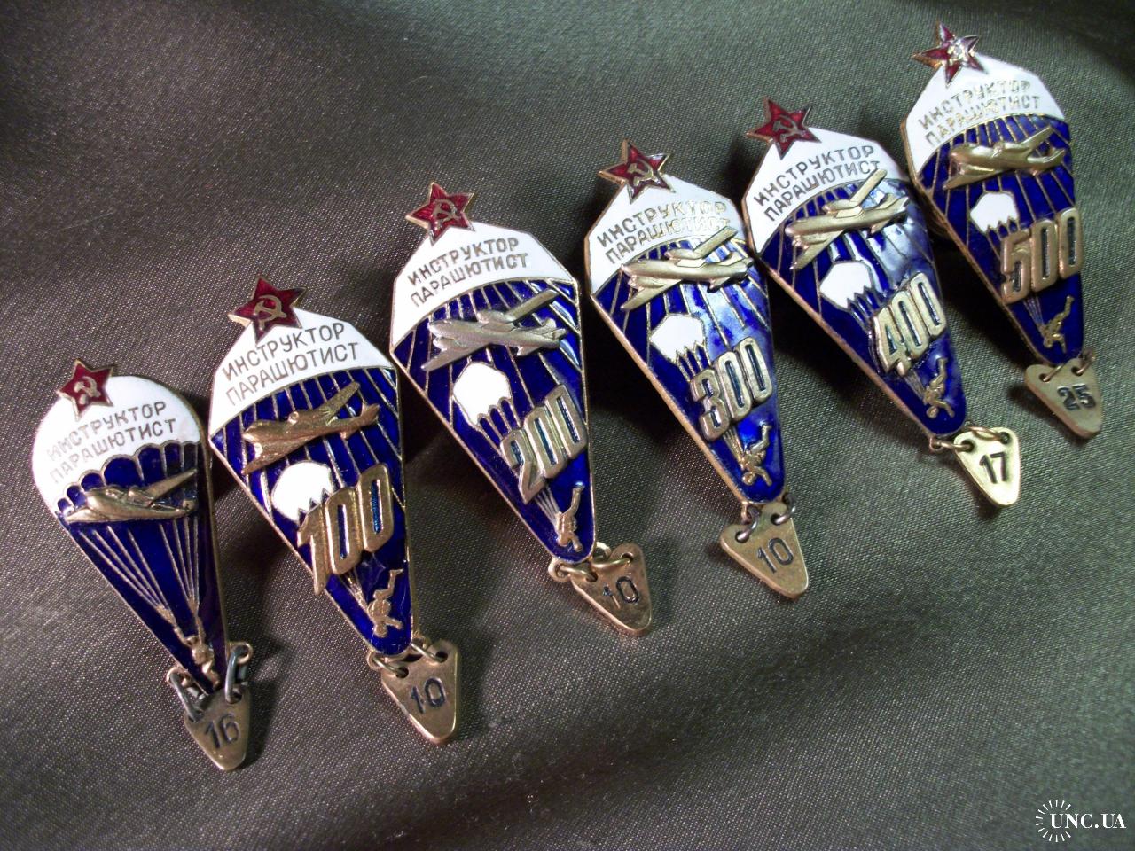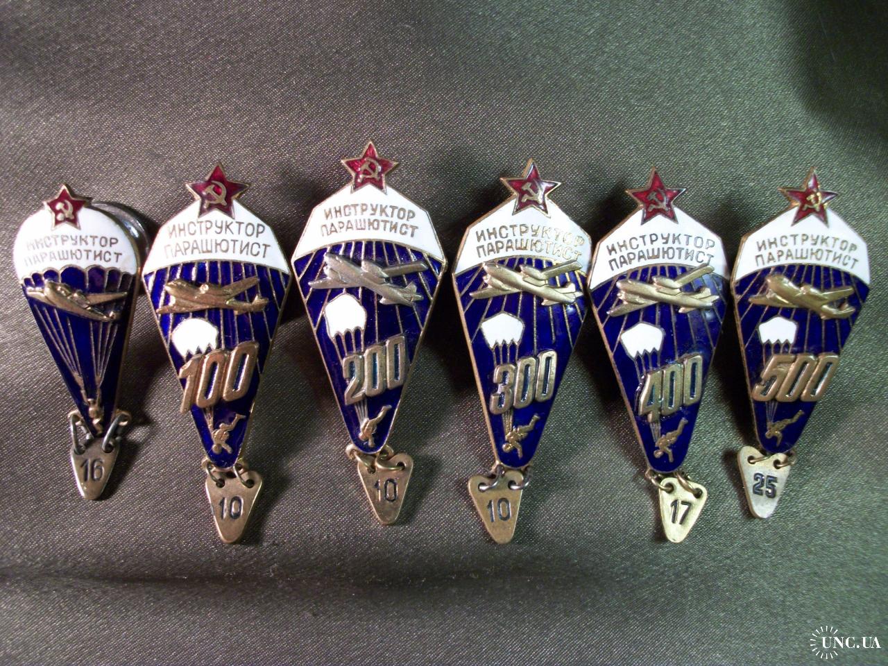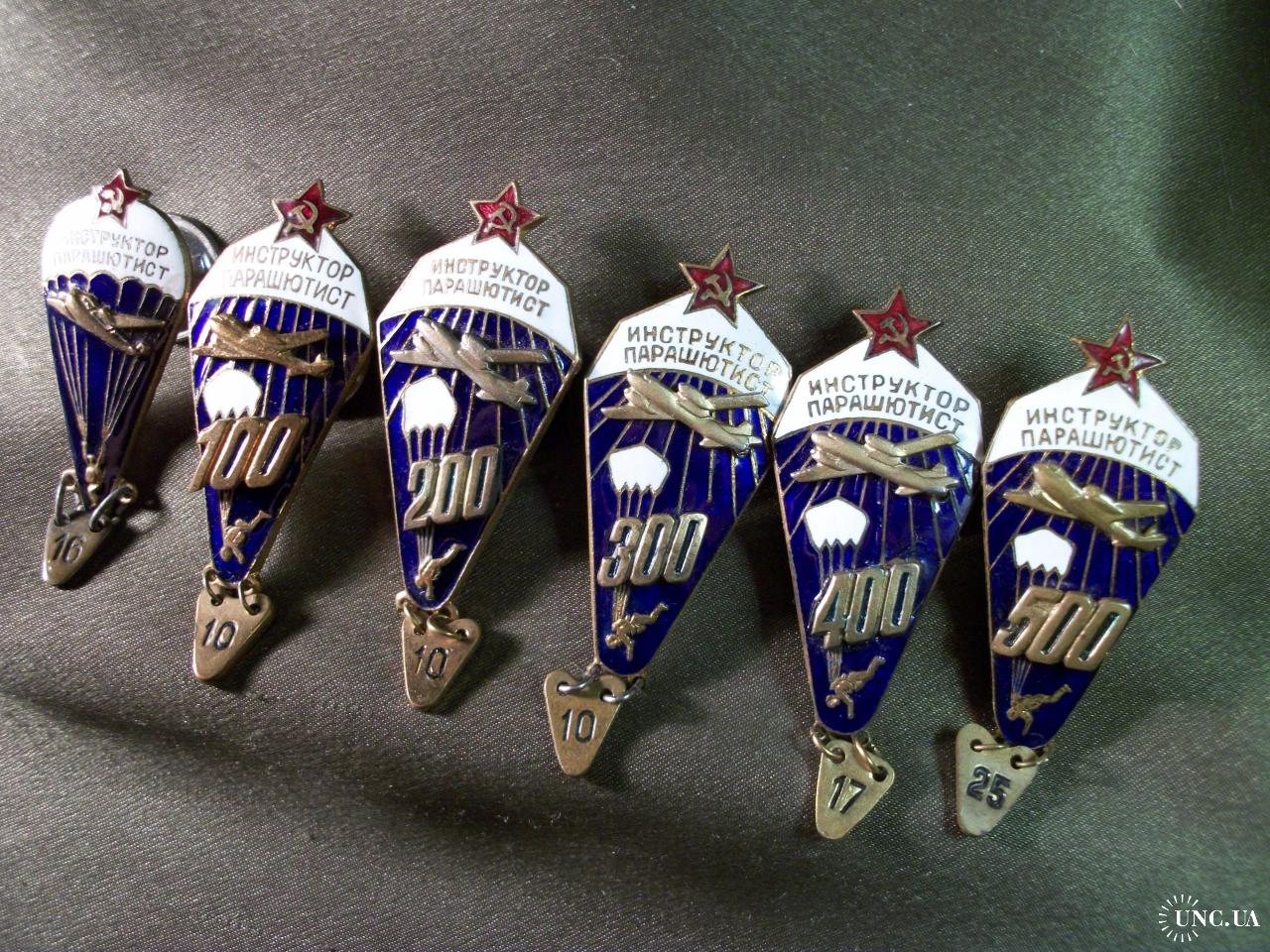1961-19805.849 Инструктор парашютист СССР, 6 штук, разновидности. 100, 200, 300, 400, 500. Тяжелый
