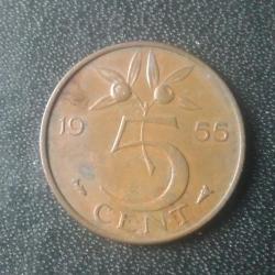 Оригинал5 центов 1955 Нидерланды