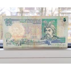 есть5 гривень 1997 року, стан банкноти по світлинах.