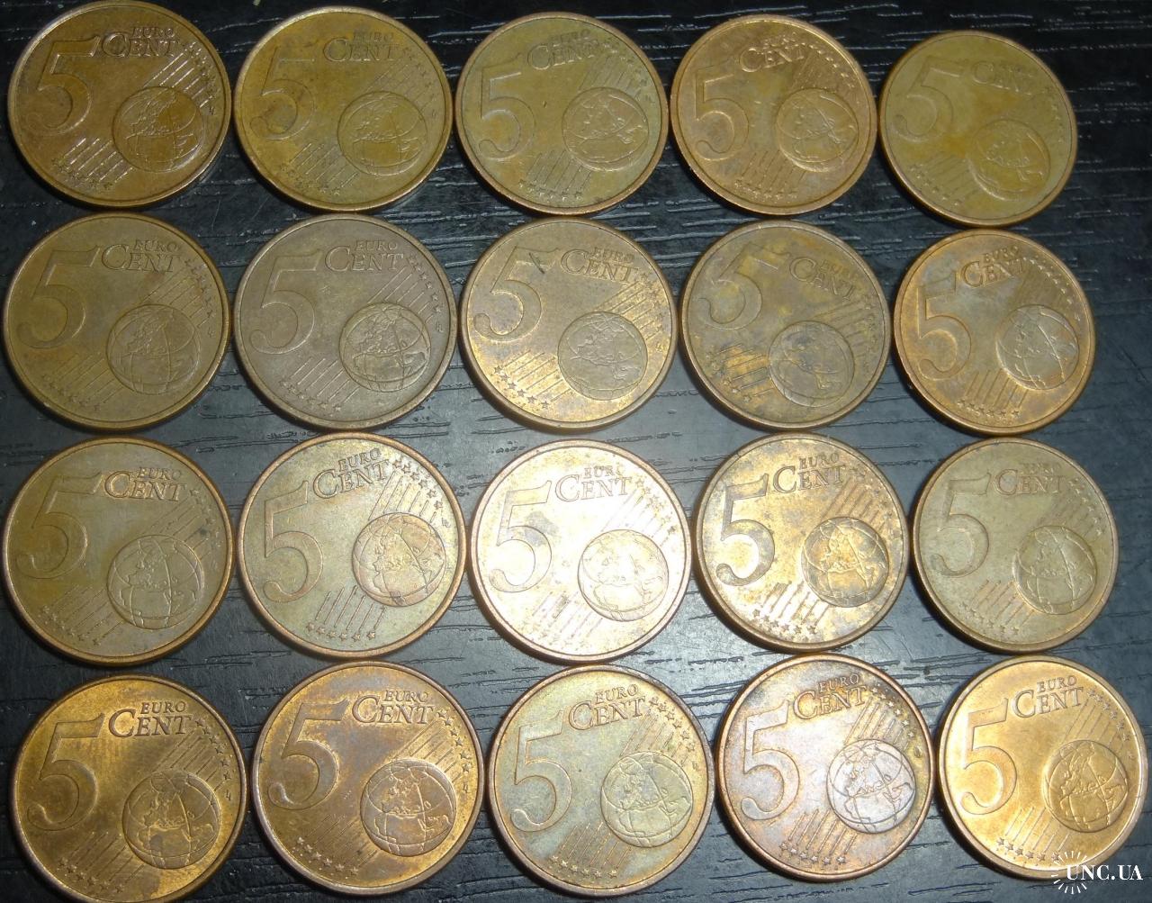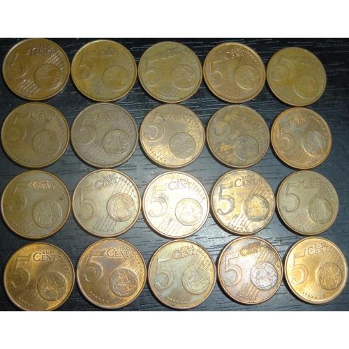 set of 5 eurocent France (all different by date) 20 pieces / порічниця 5 євроцентів Франція, 20шт, всі різні