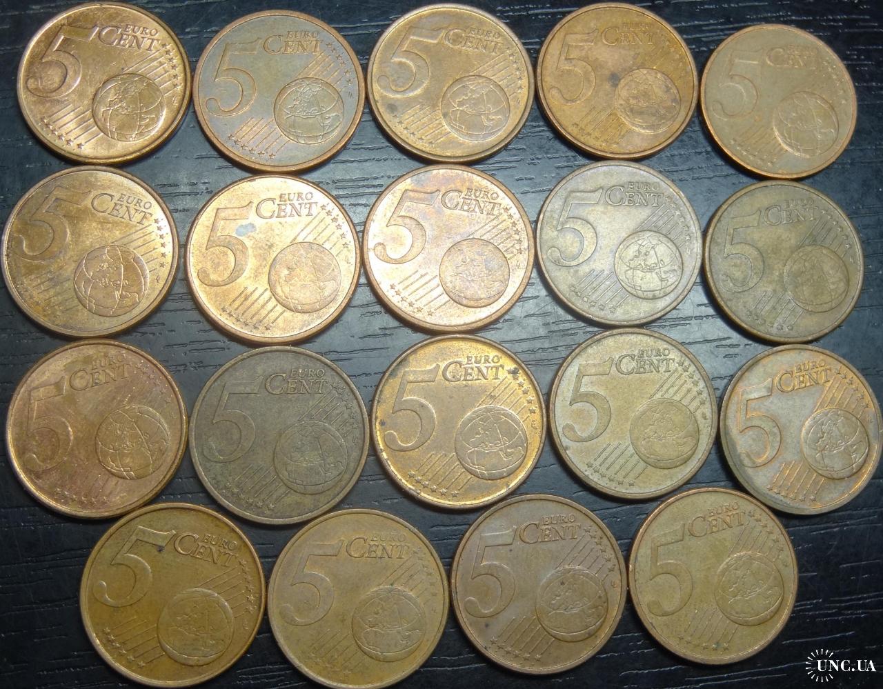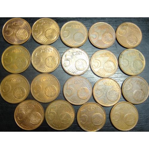 Set of 5 eurocent (different countries), 19 pieces / Комплект 5 євроцентів різних країн Євросоюзу, 19шт, всі різні