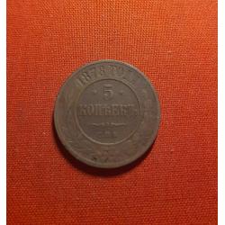 Оригинал5 копеек 1878г. Александр II, хороший сохран