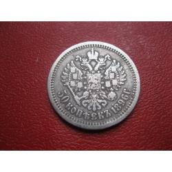 Оригинал50 копеек 1899 года А.Г.(полтина) Российская Империя, Николай II, серебро 900 пробы. Состояние на фото. Оригинал