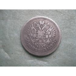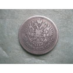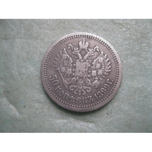 Оригинал50 копеек 1899 года *.(полтина) Российская Империя, Николай II, серебро 900 пробы. Состояние на фото. Оригинал