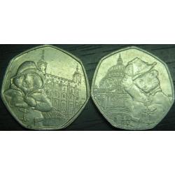 50 pence Great Britain (different kinds) Paddington Bear serie / 50 пенсів Британія (два різновиди) серія Ведмедик Паддінгтон
