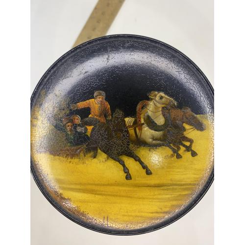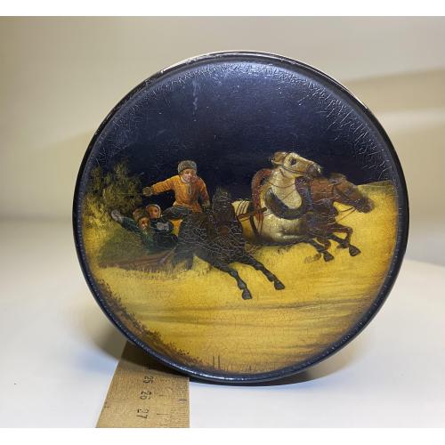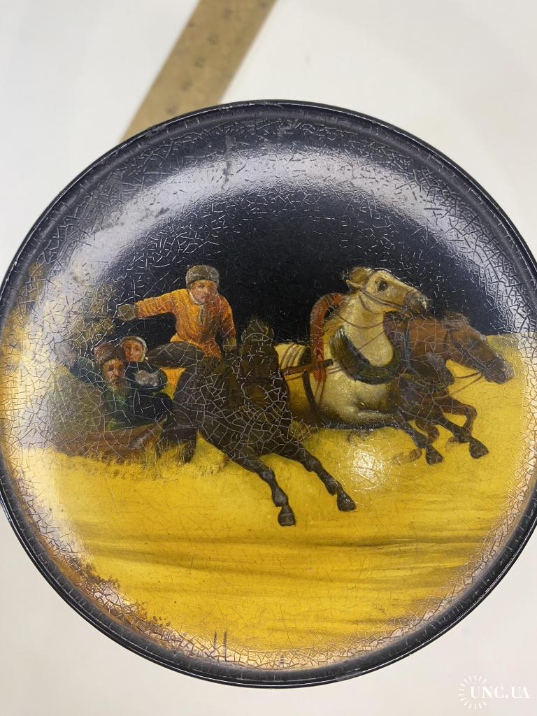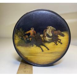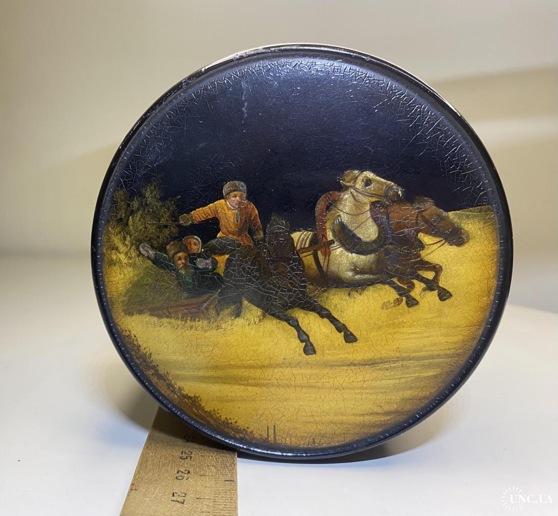 1901-19206It1 Шкатулка. Тройка. Вишняков. Царская россия. Крышка не открывается. Не значительные повреждения. Оригинал. Размер 9,7*10,3 см