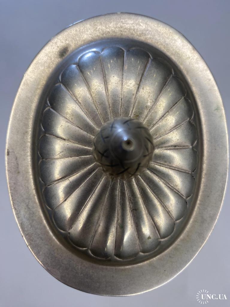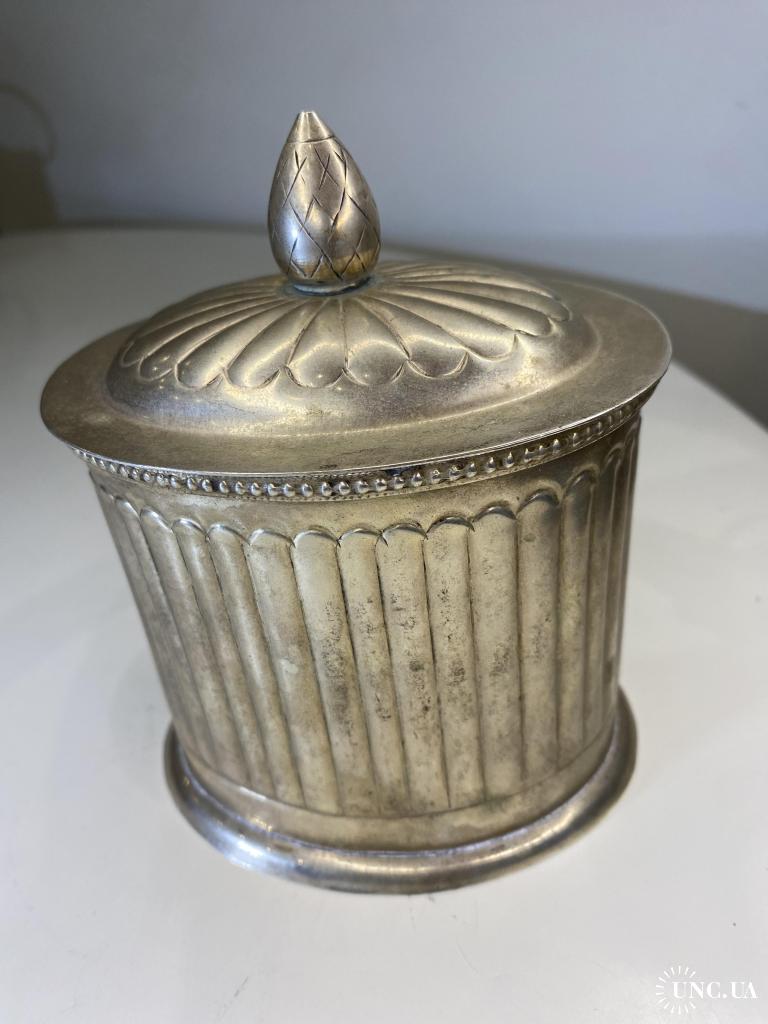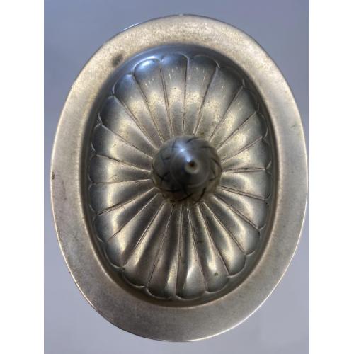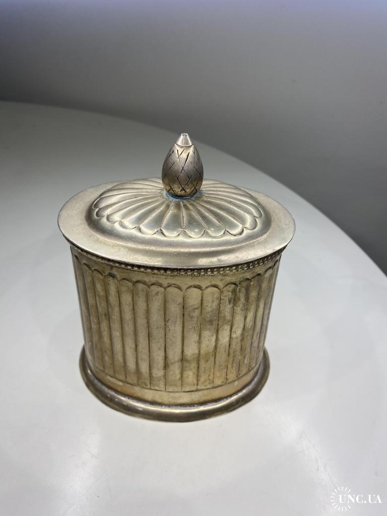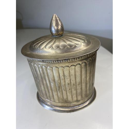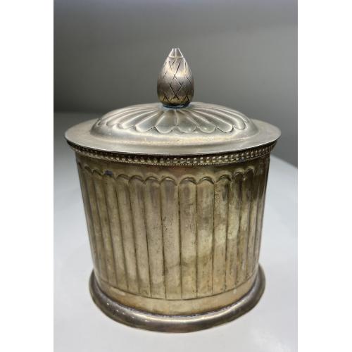 1941-19606It2 Сахарница с клеймами. Европа, Италия, серебрение. Высота с навершием 13,4 см, ширина 9*10,3 см