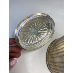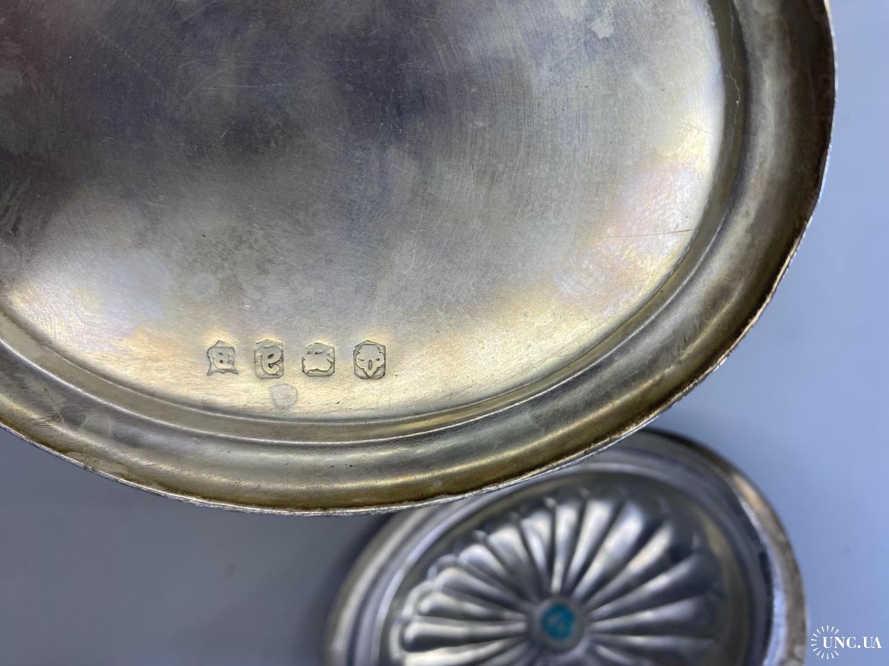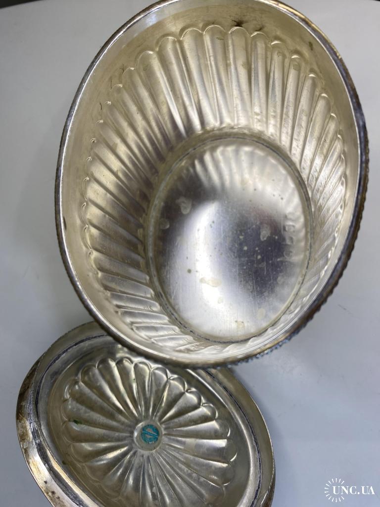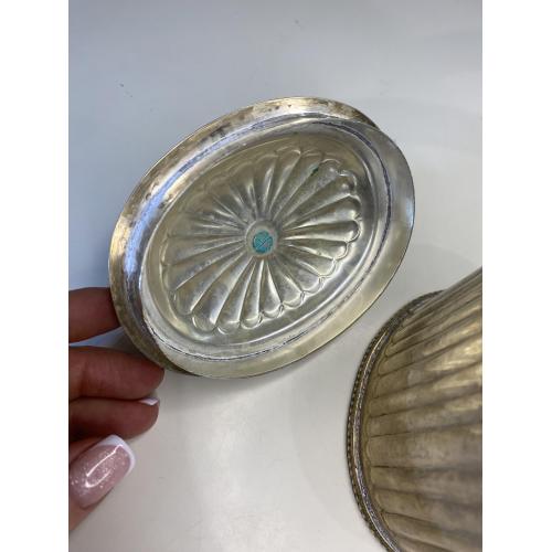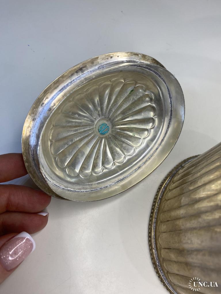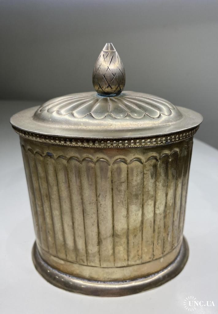 1941-19606It2 Сахарница с клеймами. Европа, Италия, серебрение. Высота с навершием 13,4 см, ширина 9*10,3 см