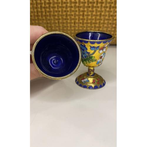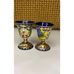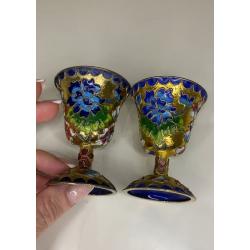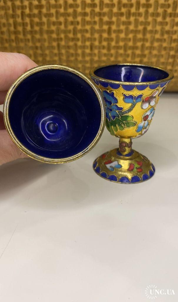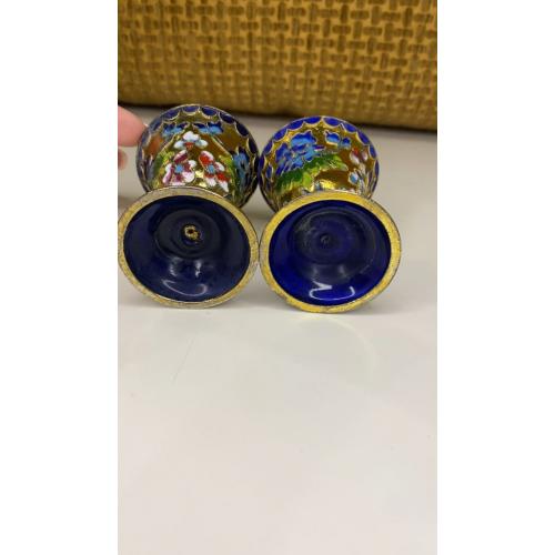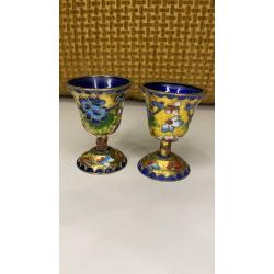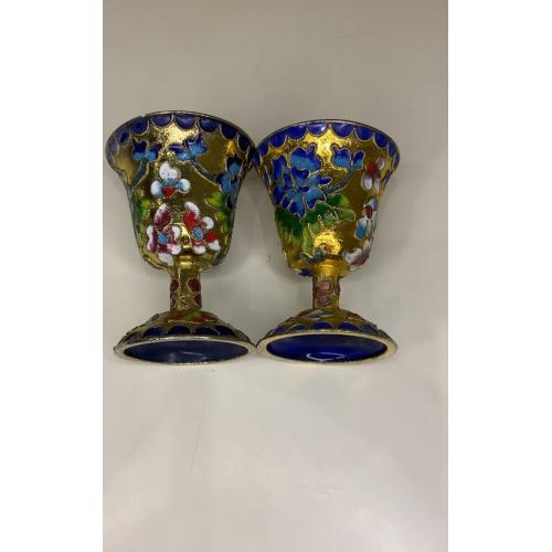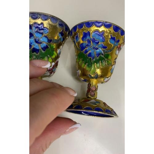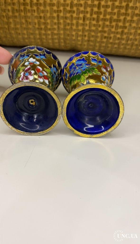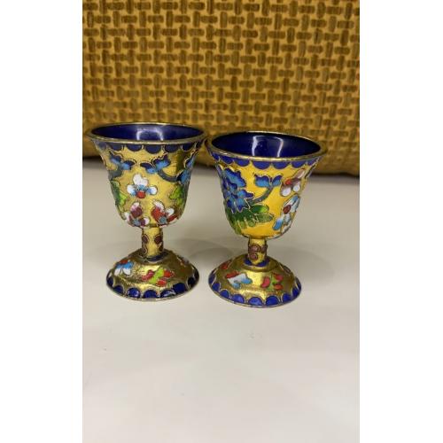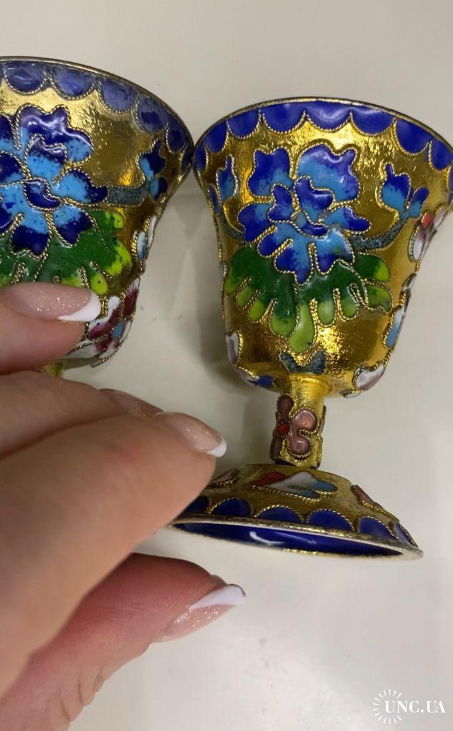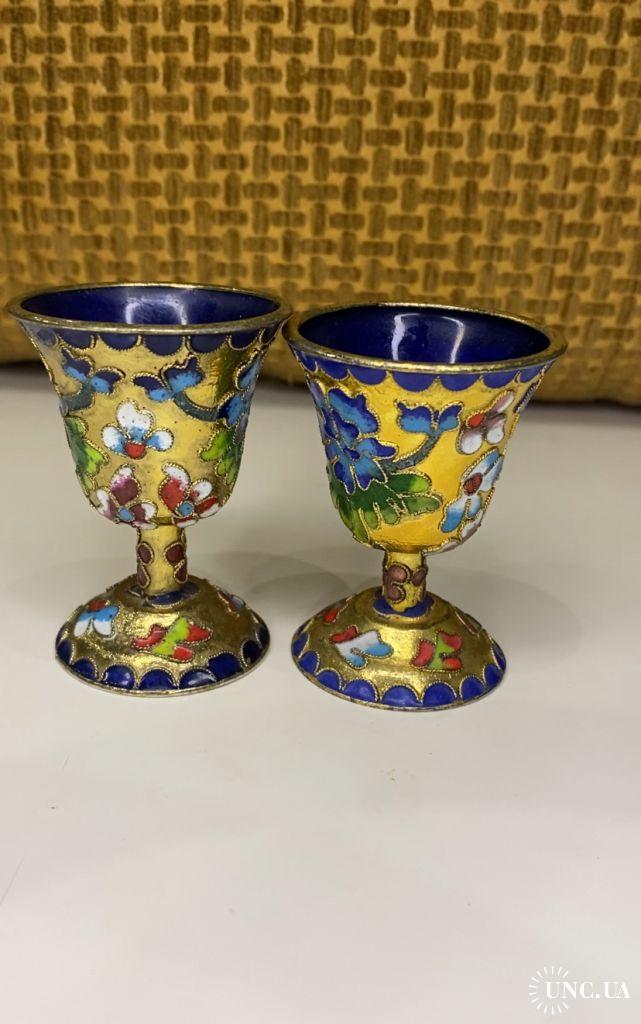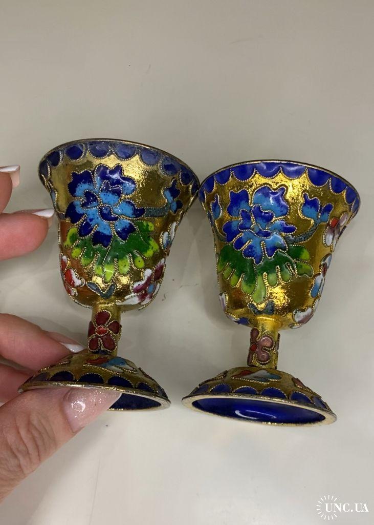 1981-20006lt24 Рюмки клуазоне. Китай, винтаж. 2 штуки. Металл, эмаль. Одна рюмка немного выше другой. Состояние хорошее.