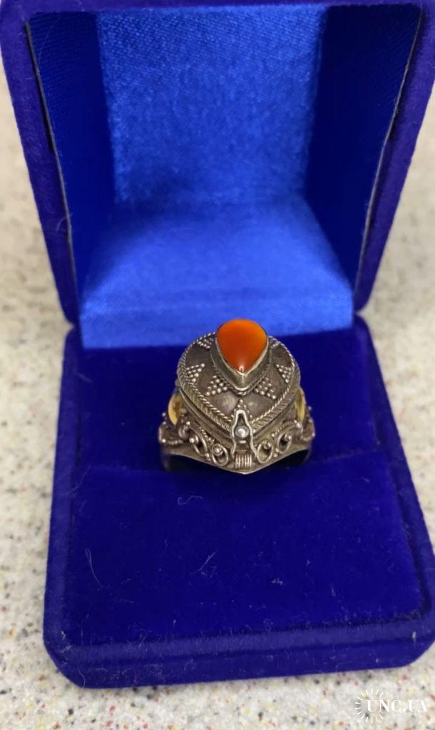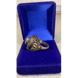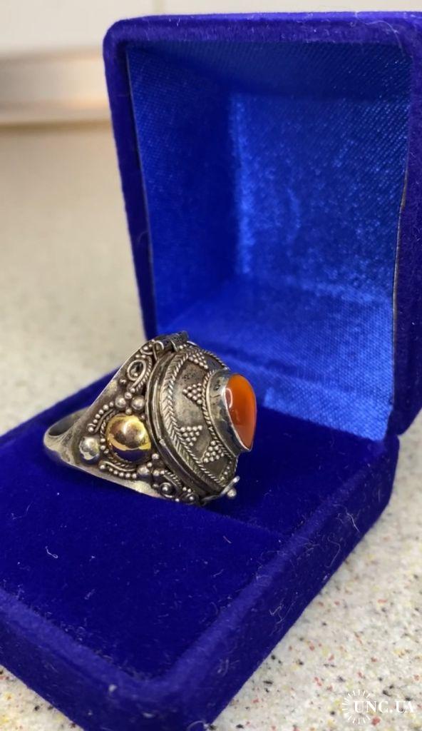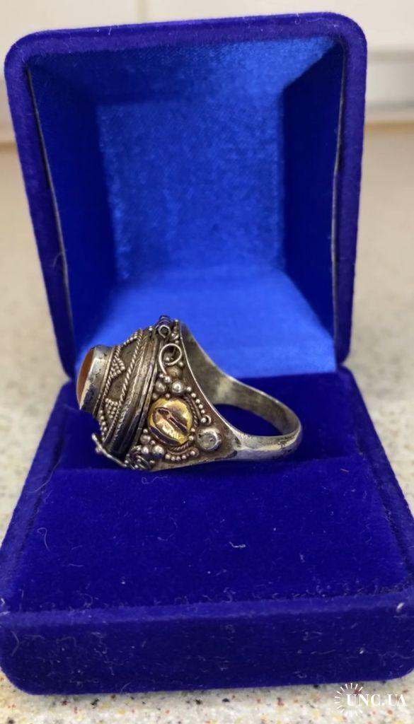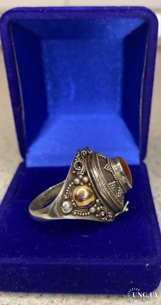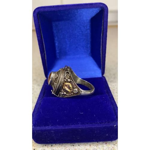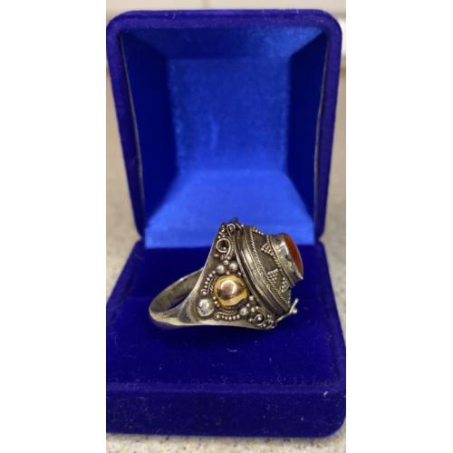 1981-20006lt40 Кольцо с камнем, вставками из золота и тайником. Серебро 925 пр. Общий вес 5,8 гр, диаметр 1,9 см