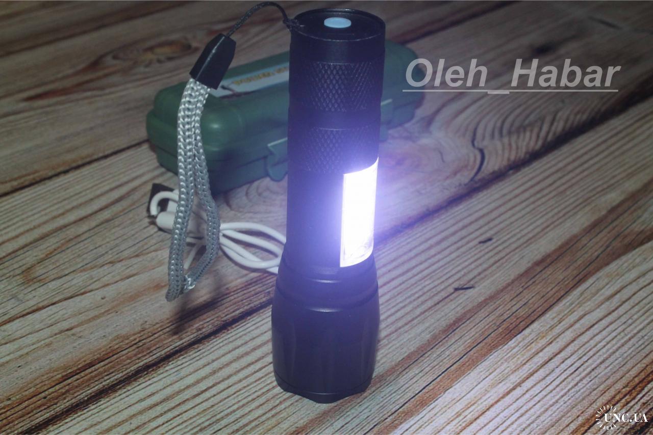 Ліхтарик світить досить яскраво за рахунок вмонтованого в нього одного головного потужного світлодіода XPE і бокового світлодіода COB.