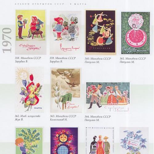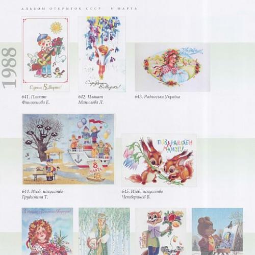 На основе частных собраний поздравительной открытки, зримо представлена трансформация идеологических символов советской эпохи в образы весны, материнства, любви. Процессы, реально отразившие постепенное превращение женского варианта пролетарской солидарности, в день Женщины.