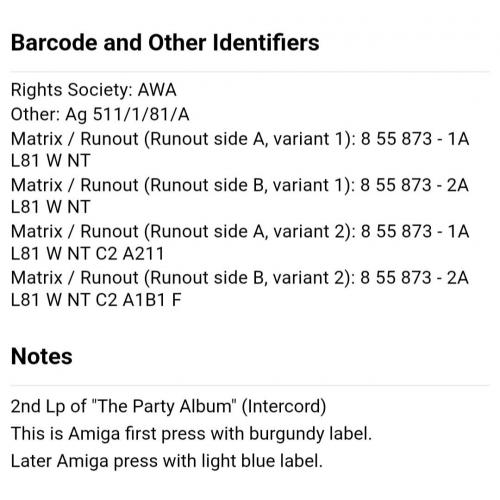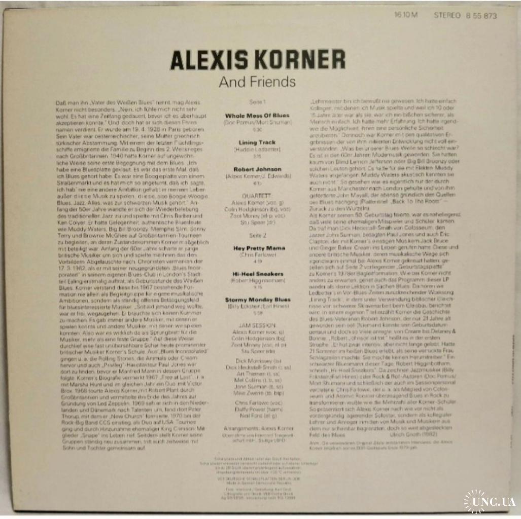 Вінілова платівка. Двадцять четвертий, в дискографії, студійний альбом (скорочена версія) Британського блюз-рок музиканта, Французького походження, покійного вже, Алексіса Ендрю Ніколаса Корнер (The Party Album. Alexis Korner And Friends) 1979. Випуск фірми (Amiga) GDR, 1982-ий рік. Оригінальне, Німецьке видання. Стан платівки ЕХ+. Стан конверту ЕХ+. Відправка по Україні службами доставки: Нова Пошта, Укр Пошта, Делівері. Також відправляємо посилки за кордон по цілому світу.