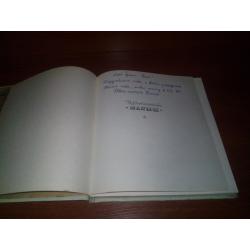 Состояние внутреннего блока очень хорошее, дарственная надпись на титульной странице, корешок обложки подклеен чёрной материей, нижние края обложки вытерты.
