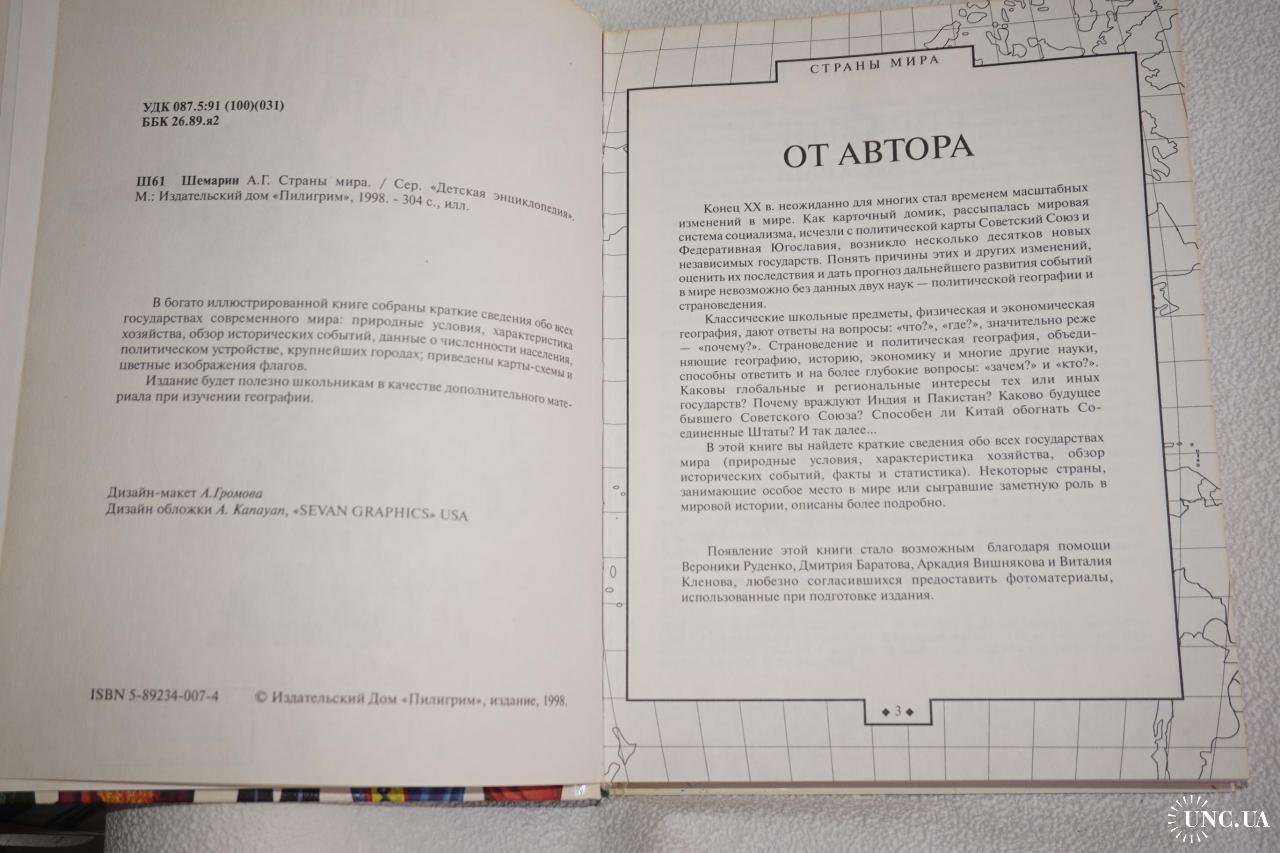 А.Г.Шемарин. Страны мира. Серия «Детская энциклопедия». Москва, «Издательский дом «Пилигрим», 1998 г., 304 стр. с иллюстрациями, энциклопедический формат (268х206 мм), твёрдый переплет.