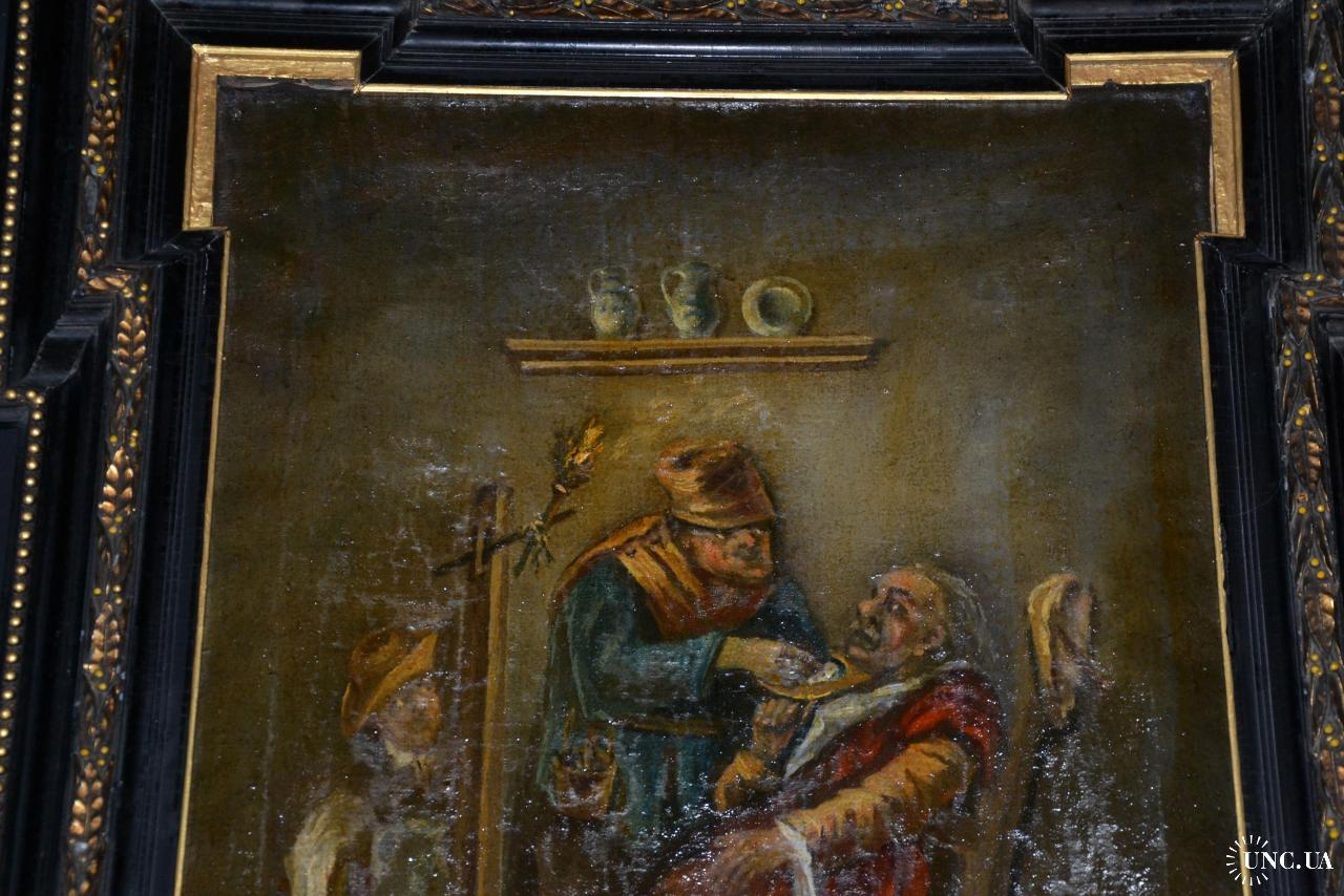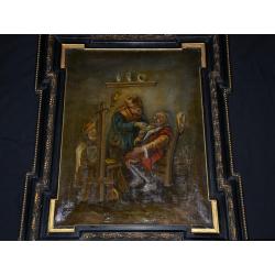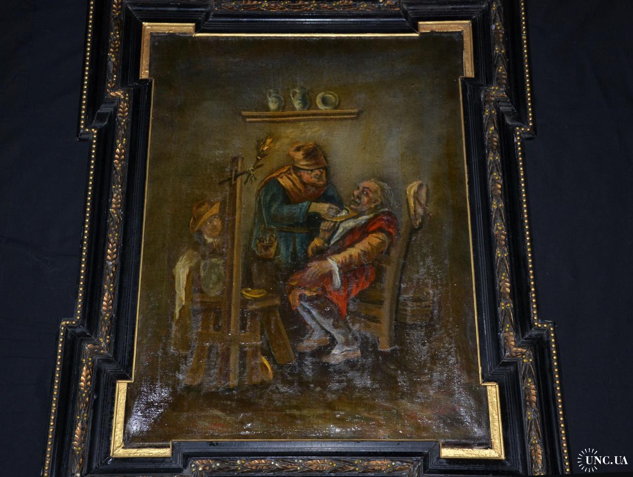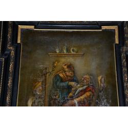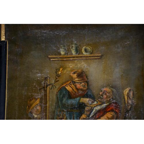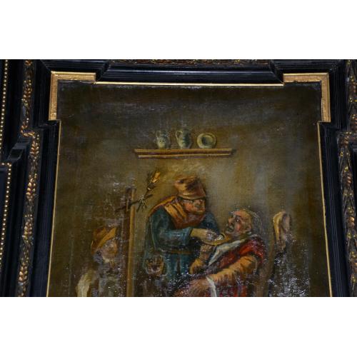 1851-1900Антикварная картина старого голландского мастера "Цирюльник".