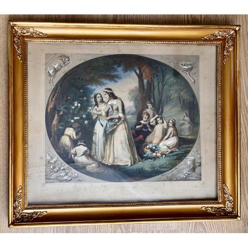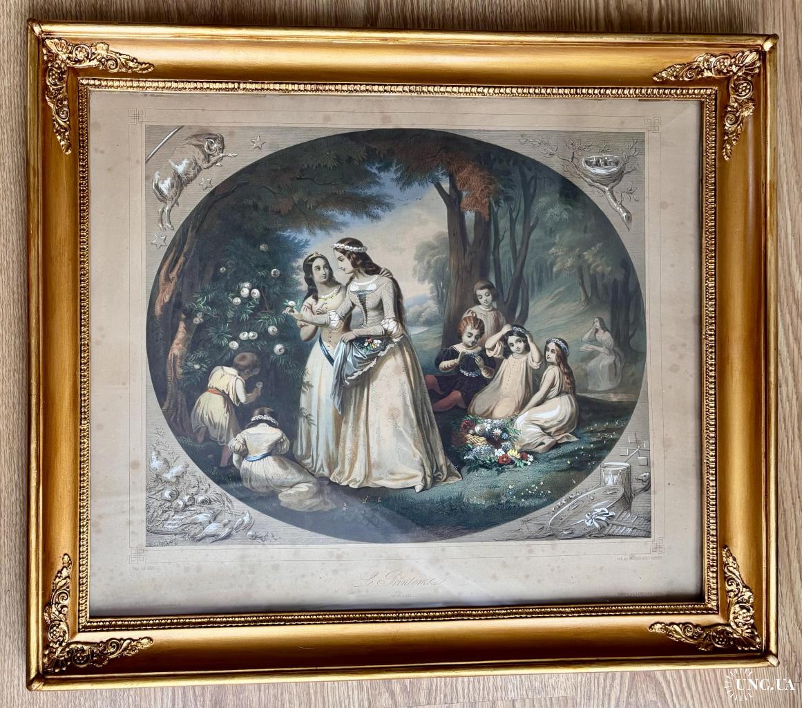 Антикварная серия из 4 французских литографий XIX века (аллегория времён года).